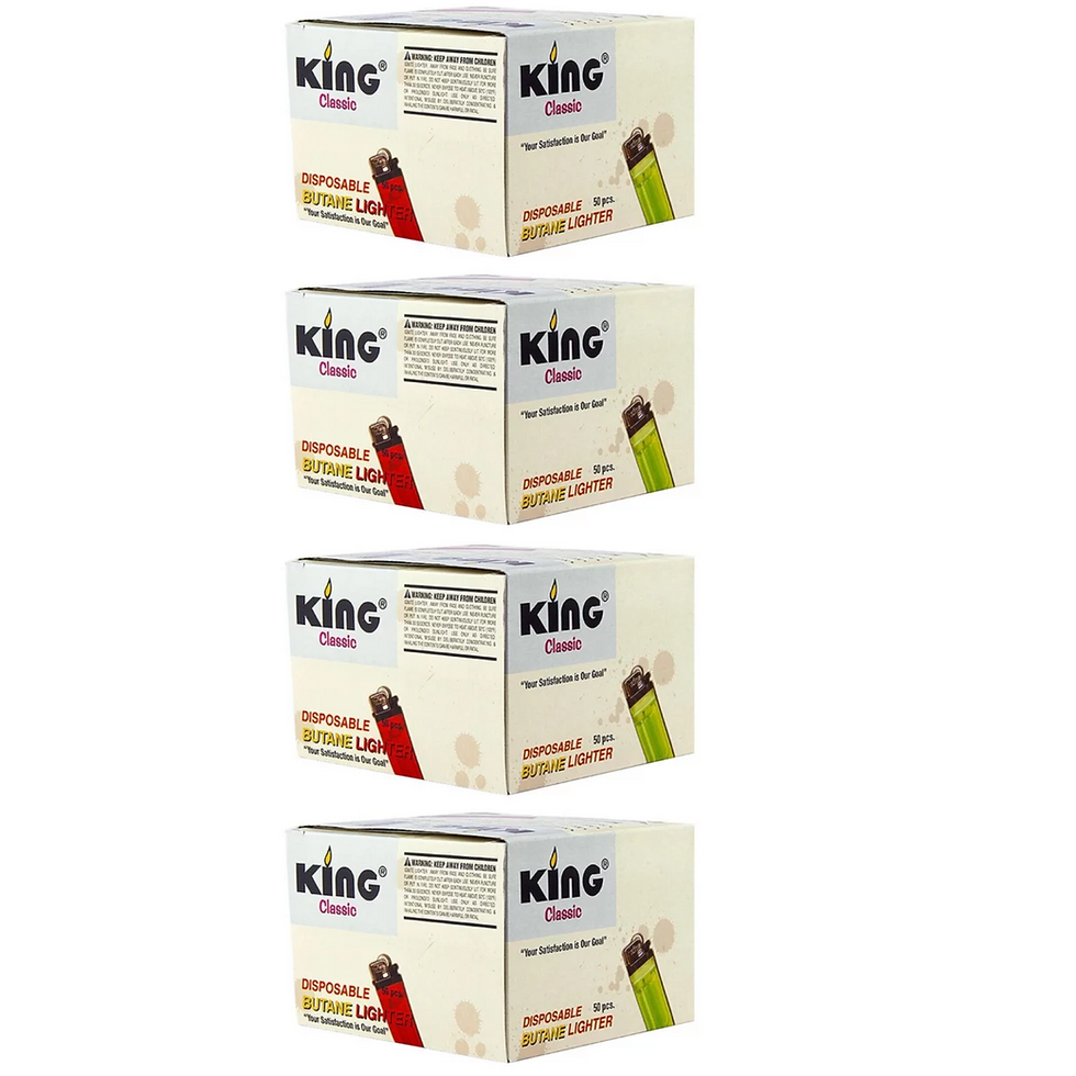 King Classic Disposable Lighters 50 Lighters Per Box 200 Count 4 Boxes
